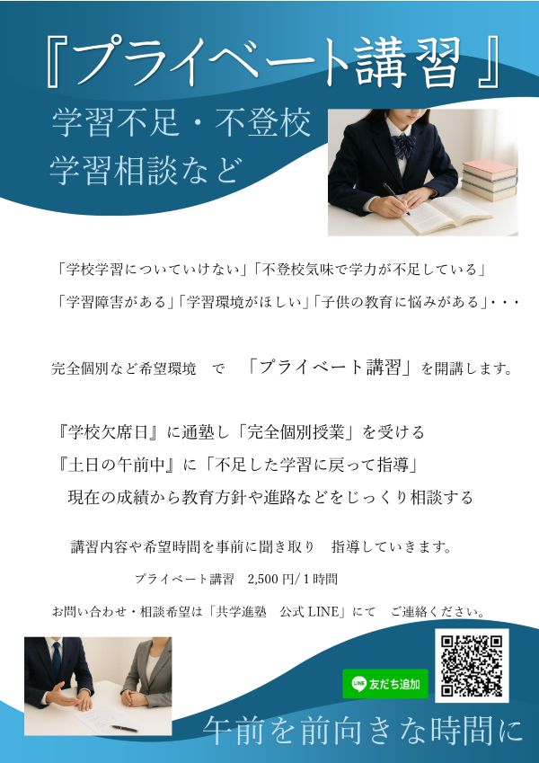・講師の目が届く授業を行う「少人数制学習塾」です。